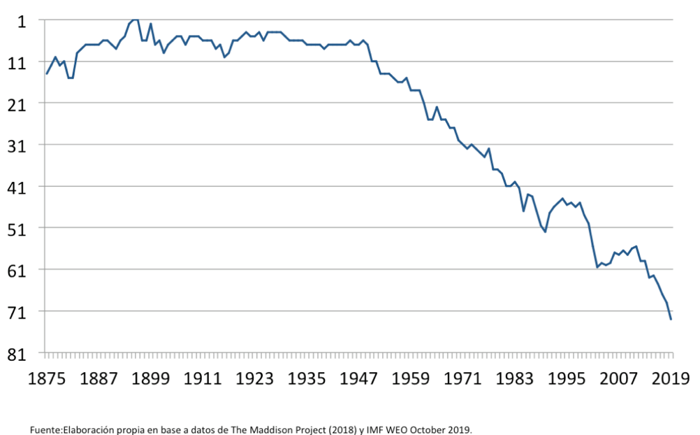 Argentina’s global ranking of GDP per capita