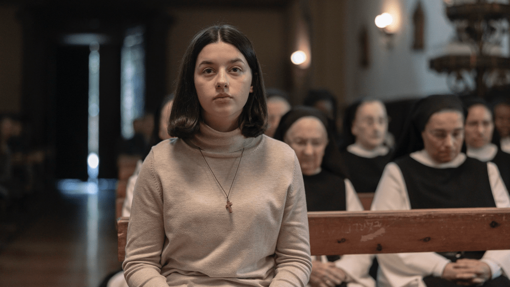 A film about cloistered nuns? The last such one I saw was The Nun (2018). And that was a horror movie. A fresh and more accurate addition therefore to contemporary cinema, Los domingos tells the story of Ainara (Soroa), a seventeen-year-old high school student, who is pondering what to do with her life. She’s normal. She has friends. They hang out. They sing in the school choir. She likes a guy called Mikel. He also sings in the choir.