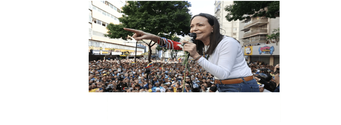 Machado lidera el partido opositor Vente Venezuela y en 2017 ayudó a fundar la alianza Soy Venezuela, que une a las fuerzas prodemocráticas del país, superando las divisiones políticas. En 2023, anunció su candidatura a la presidencia de cara a las elecciones de 2024. La dictadura de Nicolás Maduro le impidió presentarse y, entonces, decidió apoyar al candidato alternativo de la oposición, Edmundo González Urrutia. La oposición se movilizó ampliamente y recopiló documentación sistemática que confirmaba su victoria en las elecciones, pero el régimen chavista se declaró vencedor de los comicios y se aferró al control del poder.